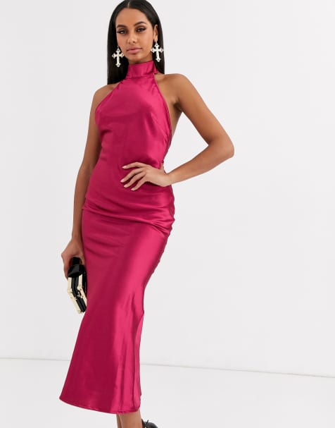 asos satin midi pajama slip with high