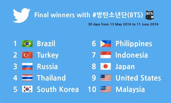 bts en cok hashtag atan ilk bes ulkeye