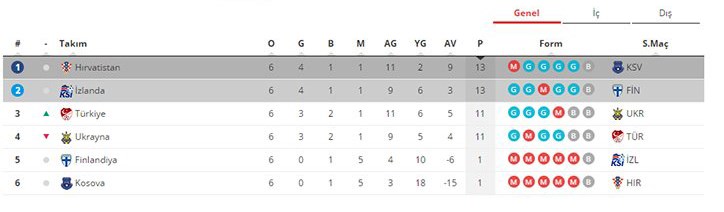iste turkiye nin grubundaki son puan durumu