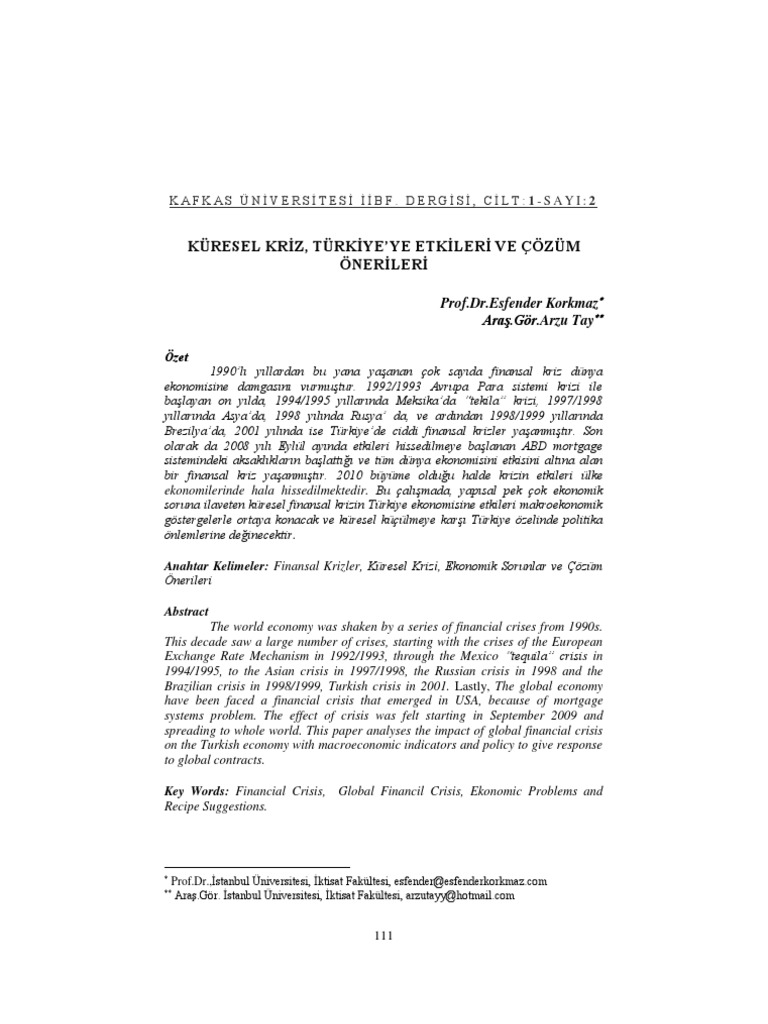 pdf kuresel finansal kriz ve turkiye