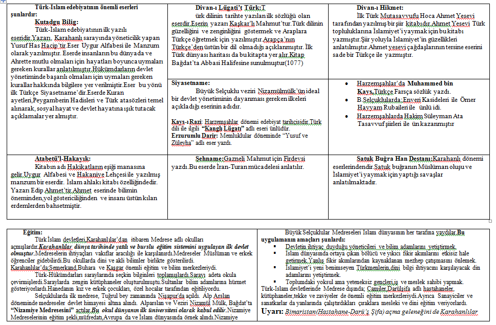 ilk turk islam devletleri onemli notlar