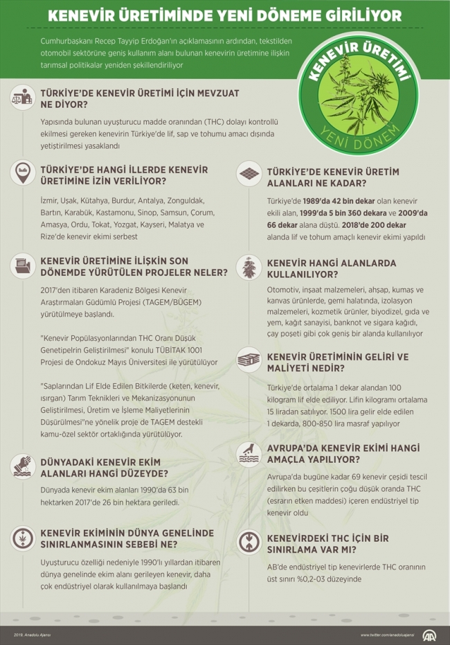 kenevir uretimi 19 ilde yasallasti