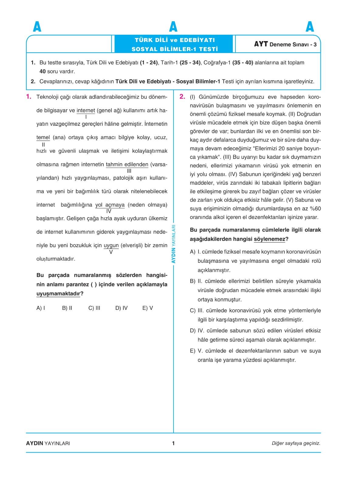 aydin yayinlari tyt 6 deneme sinavi ve