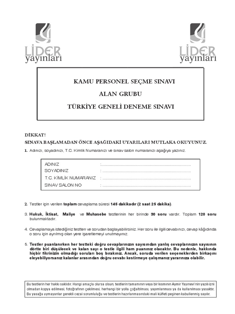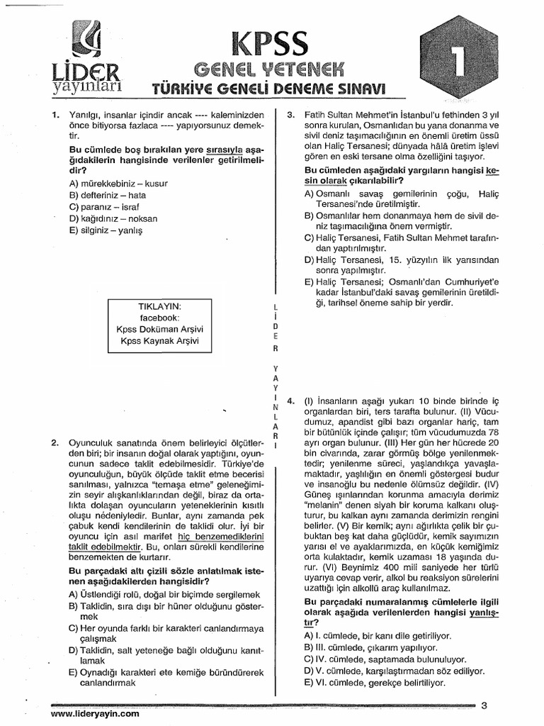 lider plus 5 ayt genel deneme pdf indir