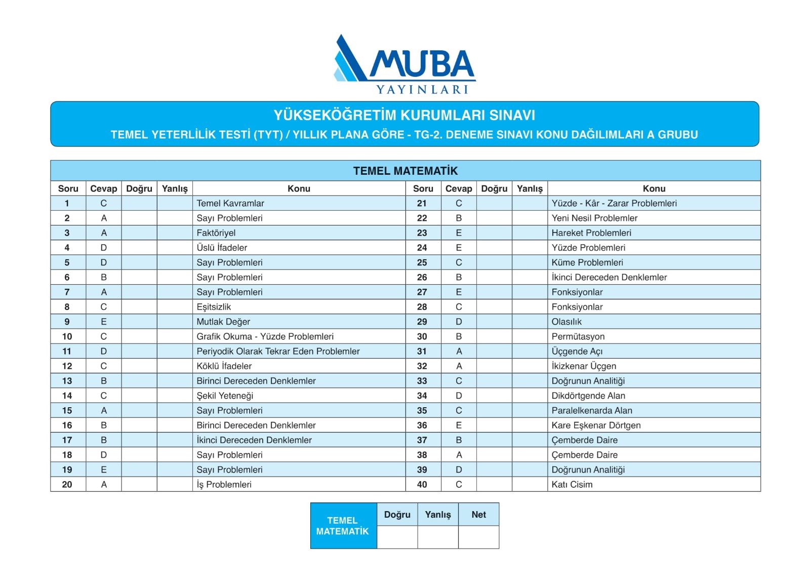 muba yayinlari cevap anahtari deneme
