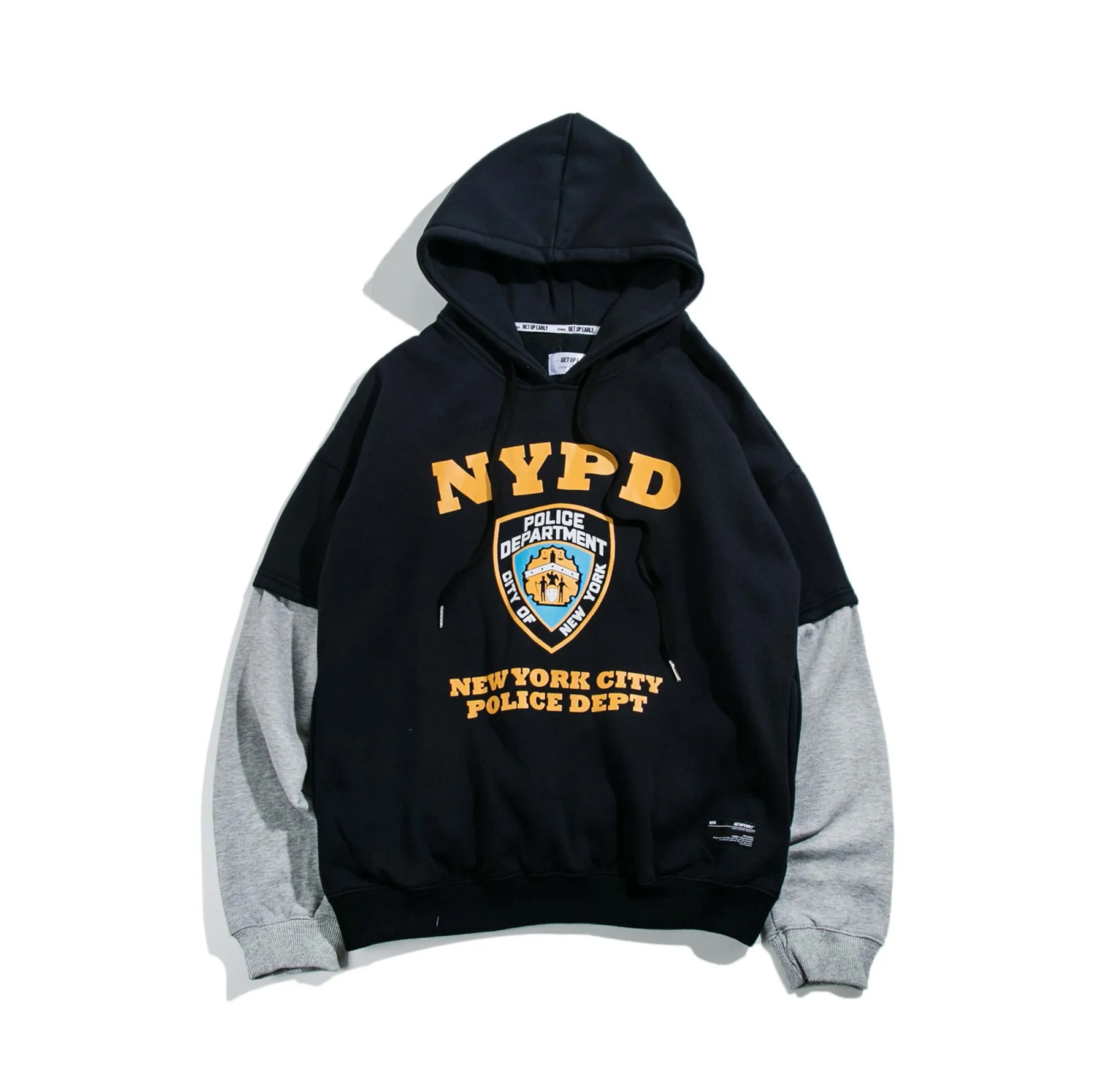 nypd funny print mens hoodies patchwork hooded tops hip hop streetwear sweatshirts swag track fleece trendy couple male hoodies