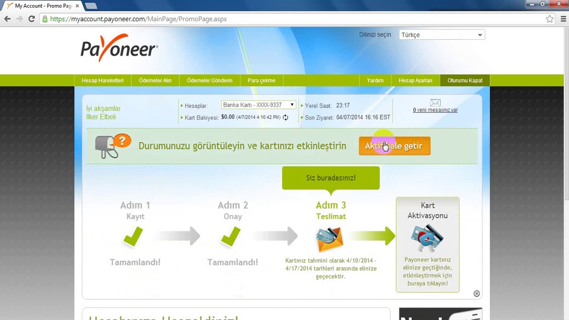 payoneer kart turkiye kayit ol bilgi