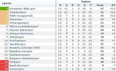 tmbff 14 hafta 3 grup puan durumu