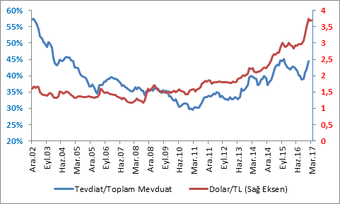 mevduat hesaplarindaki dovizin orani