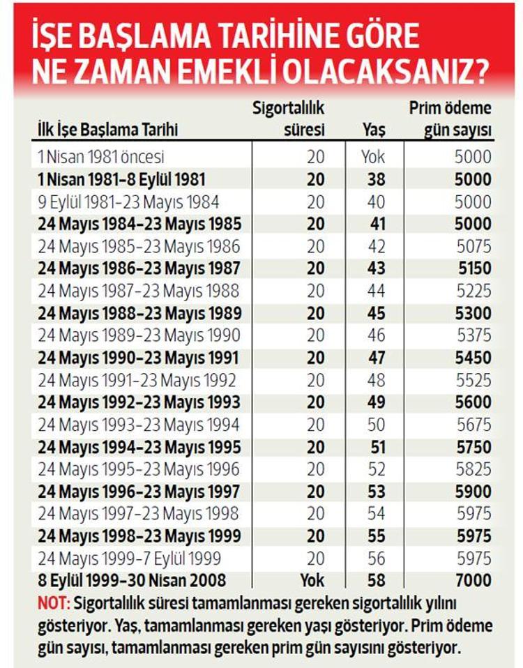 son dakika emeklilik tarihiyle