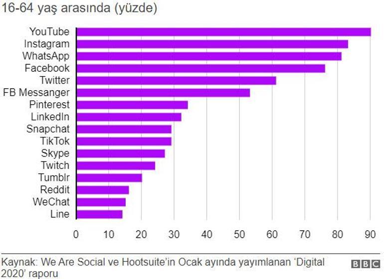 en cok kullanilan sosyal medya