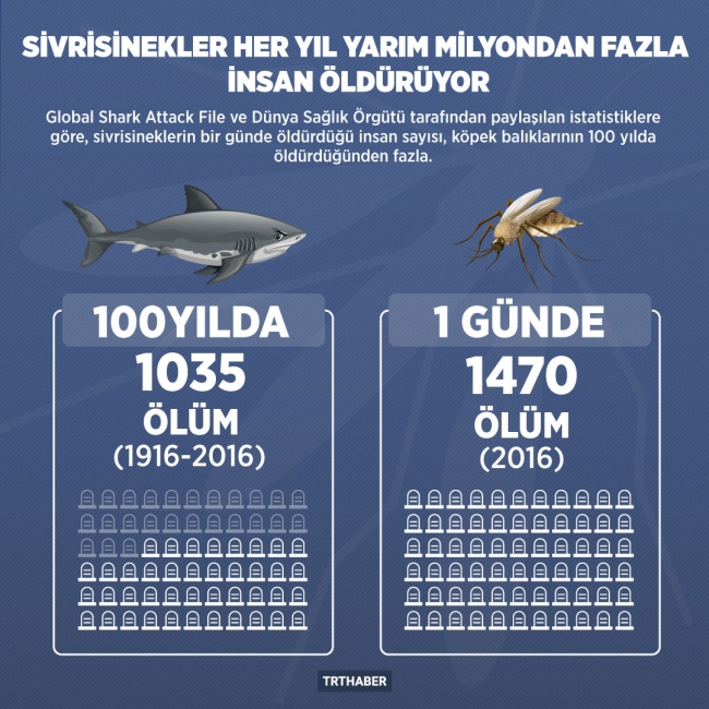 sivrisinekler her yil yarim milyondan