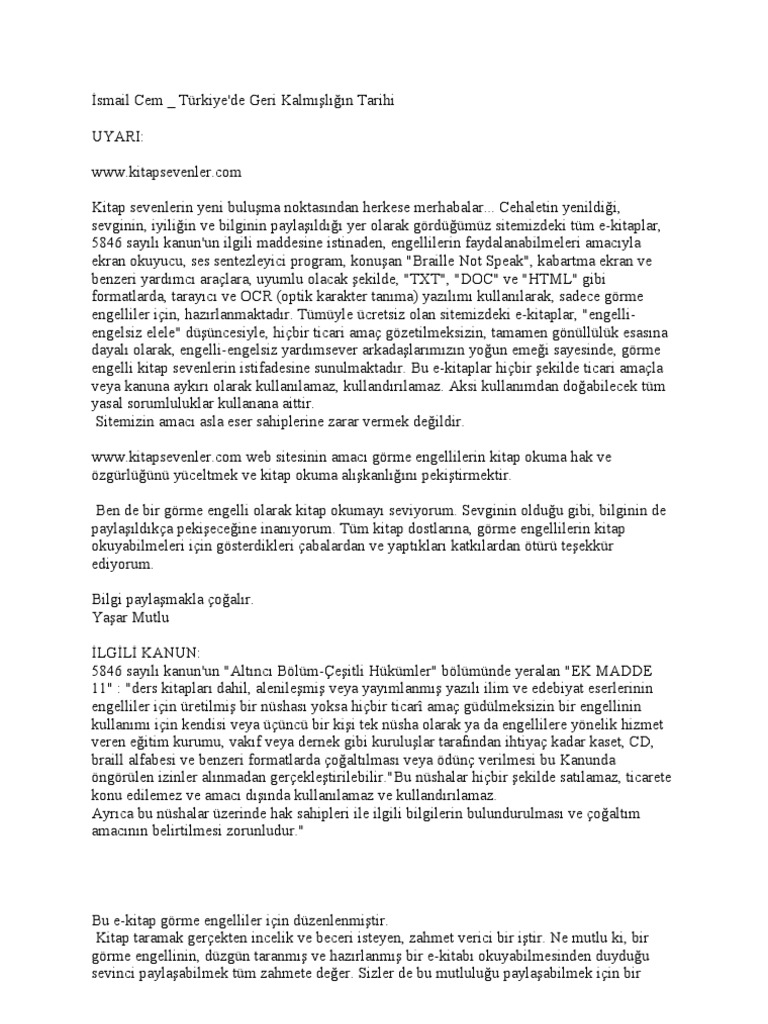 turkiye de geri kalmisligin tarihi pdf