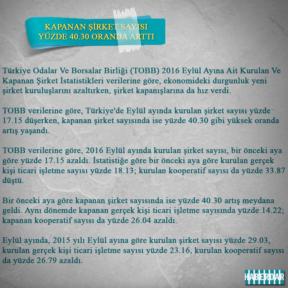 kapanan bir sirket yerine dort sirket