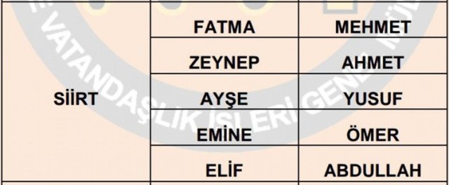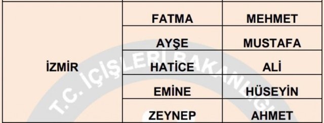 turkiye de en cok kullanilan isimler