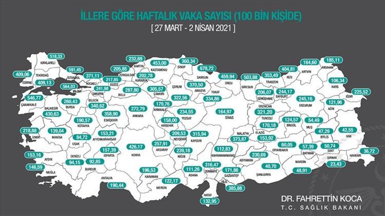 turkiye koronavirus haritasi il il