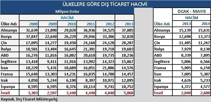 turkiye ve israil arasindaki ticaretin boyutlari nedir