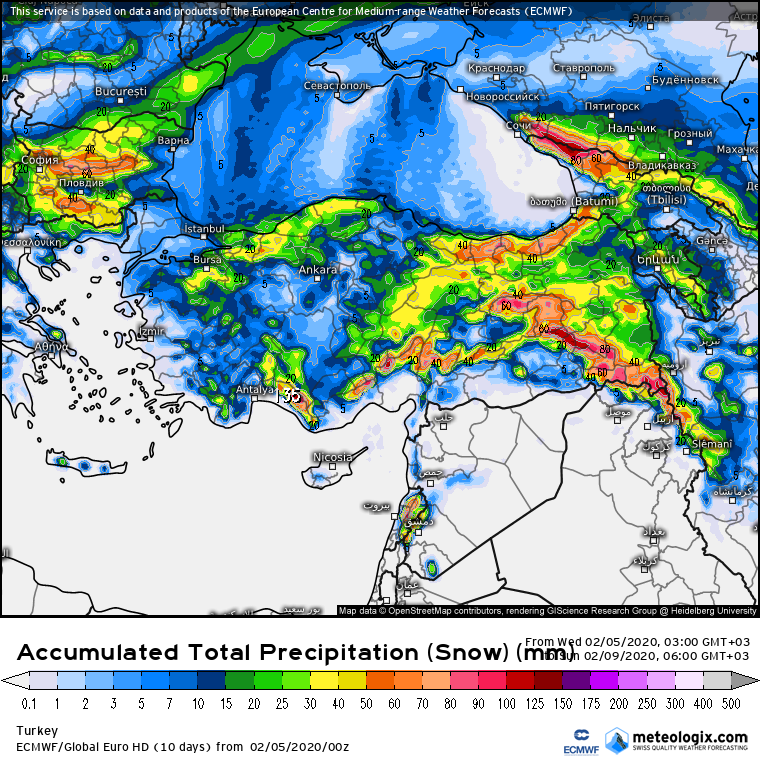 turkey next 3 days accumulated snow
