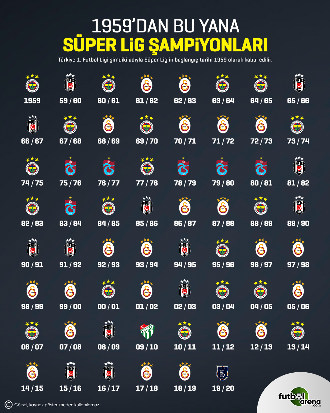 turkiye ligi 1956 2019 sampiyonluk siralamasi