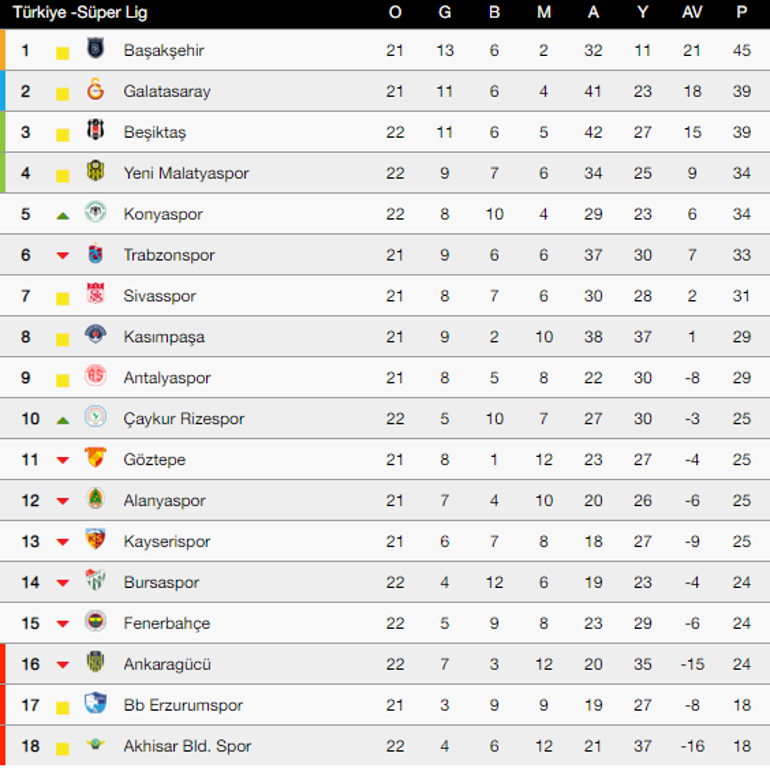 lig puan durumu tablosu ve 21 hafta