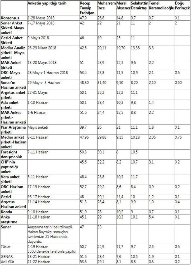 son anketler 24 haziran secimleri icin