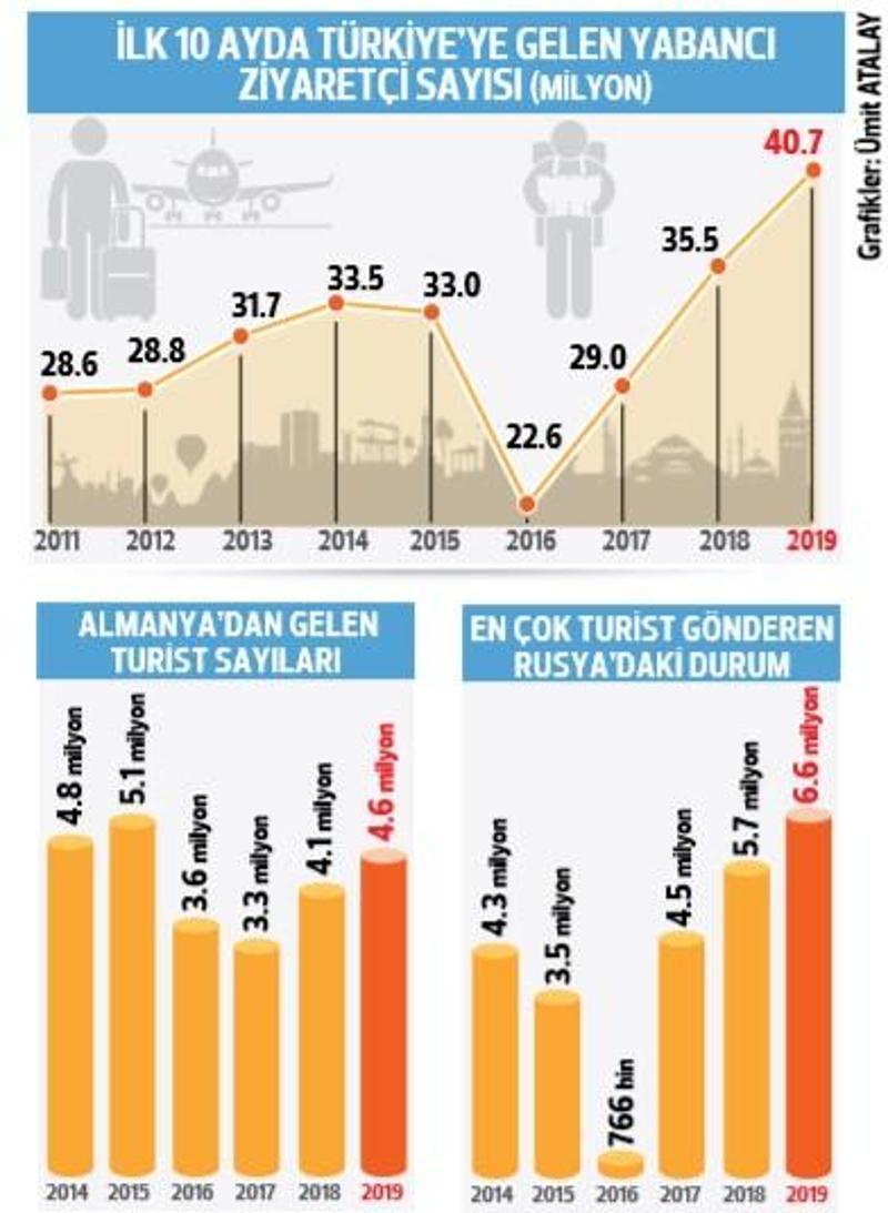 ilk 10 ayda turkiye ye en cok turist