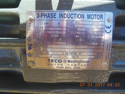 teco 3 ph induction motor 25 hp 4 p 230 460v jpn0254 ebay