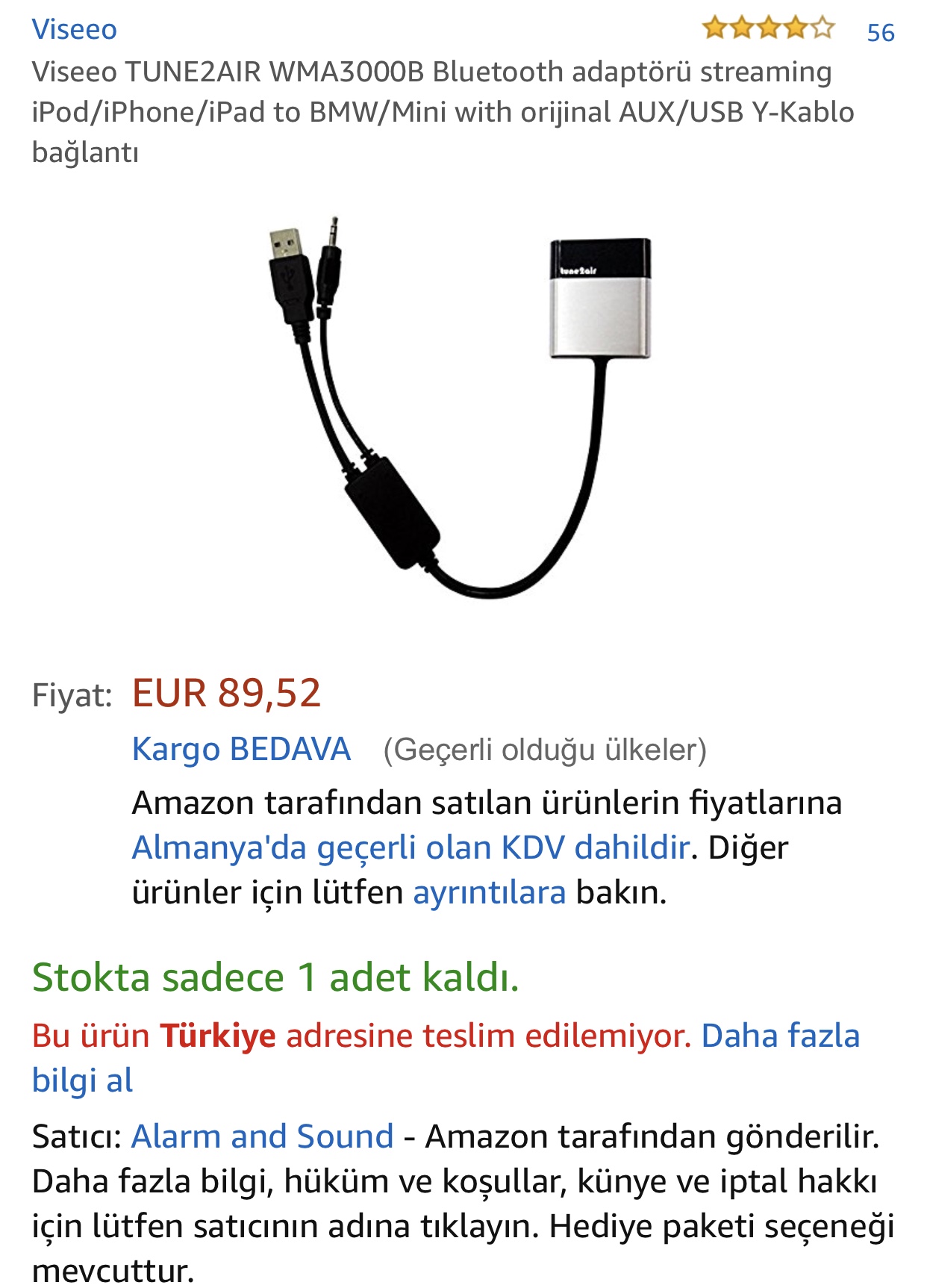 viseeo tune2air wma3000b bluetooth adapter for streaming ipod iphone ipad to bmw mini with original aux usb y cable connection
